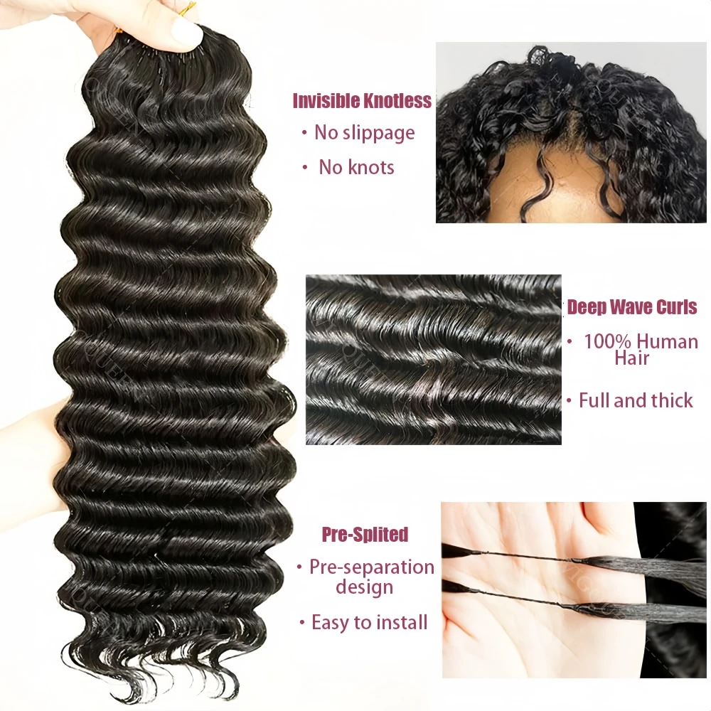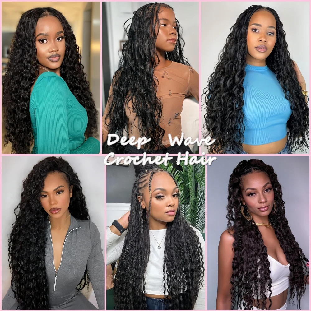 12A Deep Wave Full Head Human Crochet Hair for Black Women Extensions PreSeparated Reusable Loose Wave Feather Crochet Bulk Hair