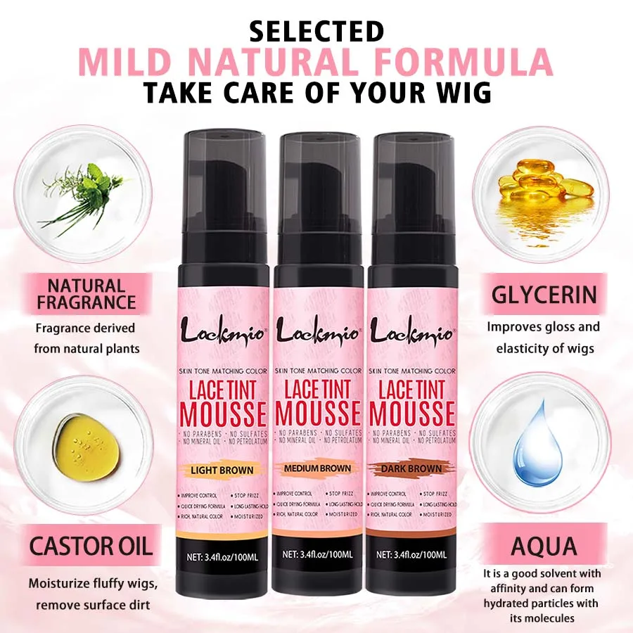 Natural Lace Tint Spray Dyed Foam Mousse for Women 100ML Wigs Mesh Skin-fitting Invisible Colorant Cosplay Wig Dye Mist